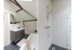 Meteen aan uw rechterhand een ideale slaap-/werkkamer. Vervolgens een diepe kast, modern toilet en de woonkamer met open keuken. De keuken is voorzien van goede inbouwapparatuur (vaatwasser, combi oven-magnetron, gaskookplaat, afzuigkap en vrijstaande koel-vriescombinatie). Op de eeerste verdieping een zeer ruime slaapkamer en een moderne badkamer, voorzien van ligbad, dubbele wastafel, wasmachine-aansluiting en inloopdouche.