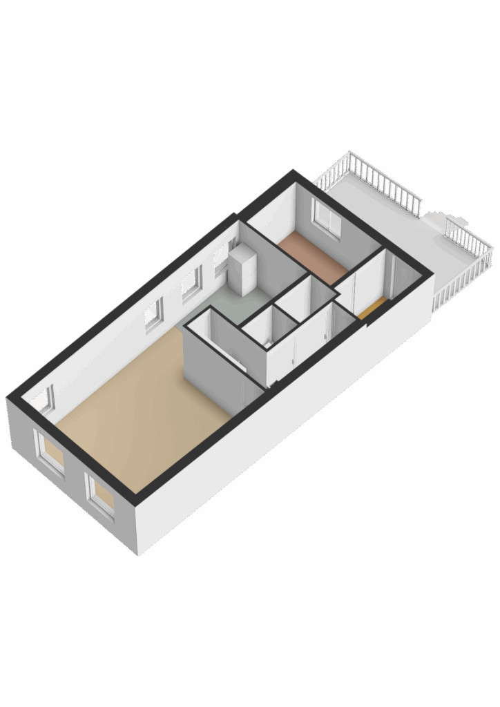 Via een stalen trap komt u via een ruim dakterras bij de woning.