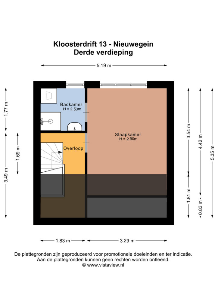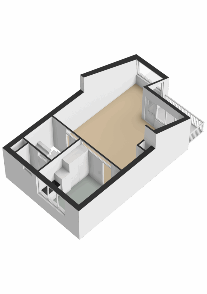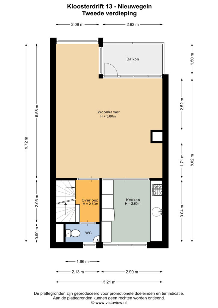 Je komt binnen op de eerste verdieping, met een halletje en een ruime bergkast. Met een trap ga je naar de tweede verdieping. Daar vind je het toilet en de gezellige woonkamer met een hoge vide, een ruim balkon en een half-open woon- eetkeuken. Op de derde verdieping een overloop met c.v., en een grote slaapkamer met toegang naar de badkamer.