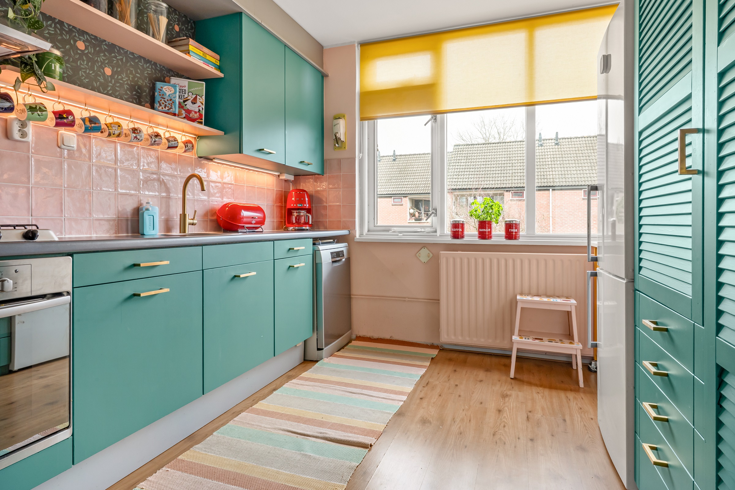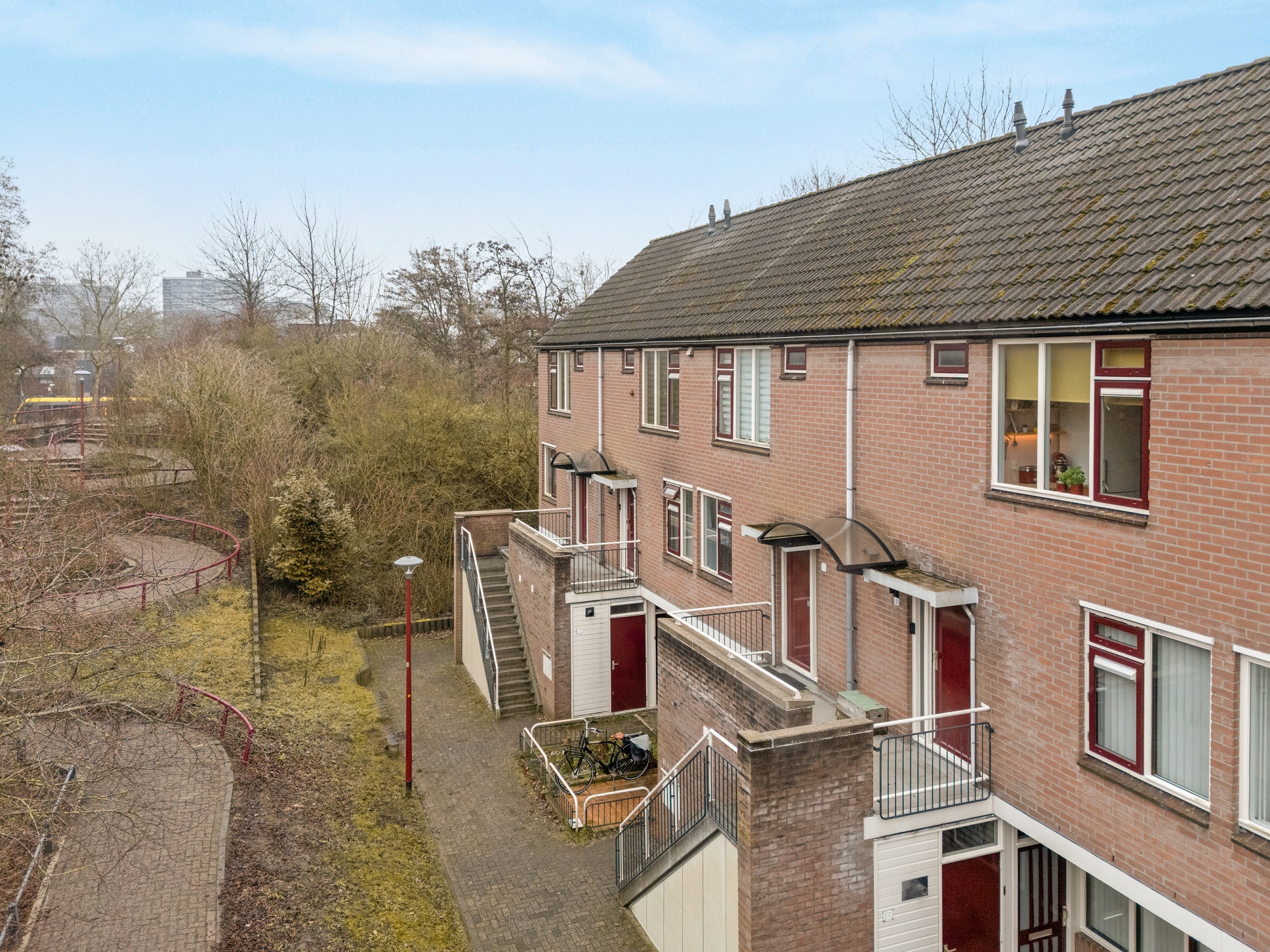 Deze woning ligt aan een autovrije straat, de VvE zorgt voor onderhoud van het casco en de verzekering, dus daar heb je geen omkijken naar. Er is een stenen berging voor de fietsen of andere opslag.