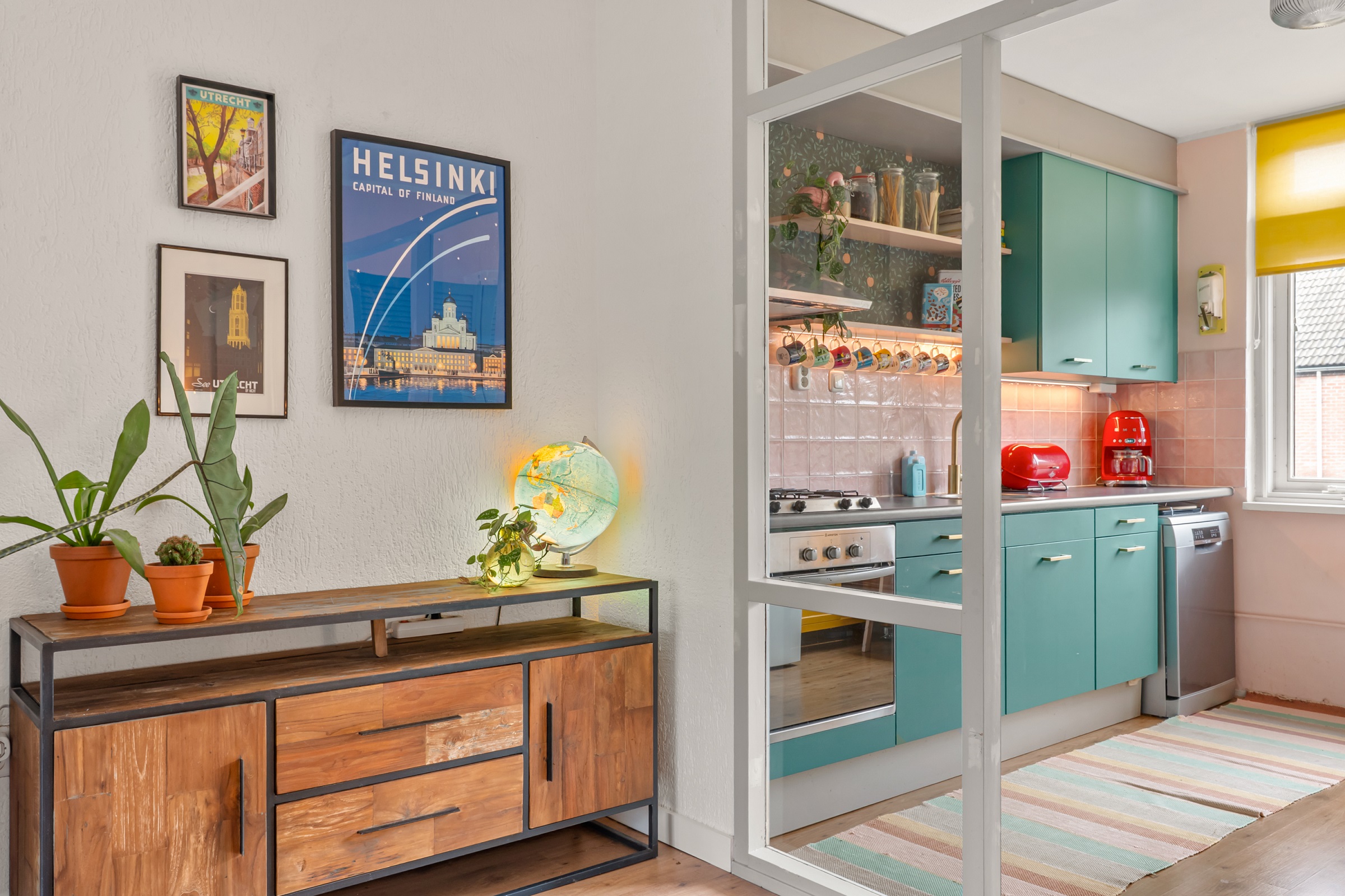 Je komt binnen op de eerste verdieping, met een halletje en een ruime bergkast. Met een trap ga je naar de tweede verdieping. Daar vind je het toilet en de gezellige woonkamer met een hoge vide, een ruim balkon en een half-open woon- eetkeuken. Op de derde verdieping een overloop met c.v., en een grote slaapkamer met toegang naar de badkamer.