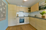 Woonkamer met open keuken, voorzien van Siemens inbouwapparatuur en een derde kamer.
